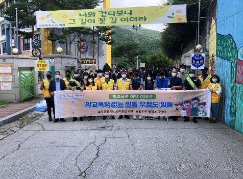 이번 캠페인은 일동면 청소년지도협의회, 일동중학교 교사 및 학생, 일동파출소, 일동면행정복지센터 직원 등 20여 명이 참여한 가운데 ‘학교폭력 없는 일동, 우정도 일등’이라는 슬로건으로 진행했다.