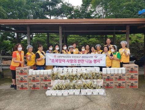 [한국뉴스타임=편집국] 대한적십자사 포천 관인봉사회는 지난 16일 초복을 맞이해 어려운 이웃 70여 가구를 대상으로 나눔 행사를 진행했다.