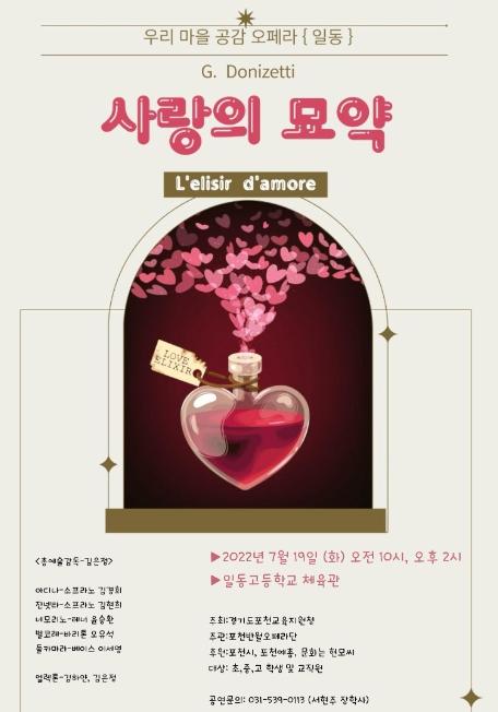 지리적 요인으로 인해 문화예술 등 많은 분야에서 소외되었다고 느끼는 포천 북부 지역 학생들의 부족한 문화예술 향유 기회 제공을 위해 특별히 일동지역에 마련된 이번 공연은 포천의 반월오페라단과의 협업으로 준비되었다. 10시와 14시 2회 공연으로, 사전 신청을 받아 인근 지역 학생들과 교직원, 학부모, 지역주민 280여 명이 함께 관람한다.