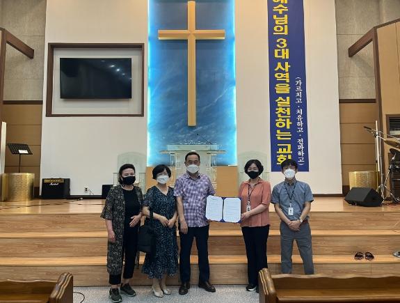 이날 협약식에는 이윤주 동구동장과 최재동 구리에덴교회 담임목사 등이 참여했다.