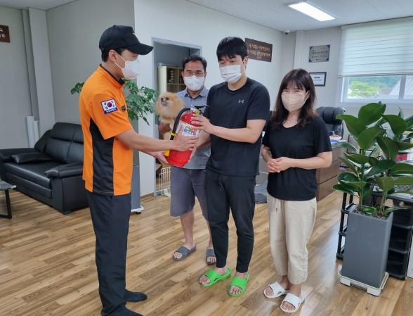 가평소방서(서장 배영환)는?소화기를?이용해?화재현장에서?적극적으로 화재를 초기에 진압하여 피해를 최소화한 인근?주민을?화재현장?지킴이로?선정하여?소화기를?전달했다고?밝혔다.?