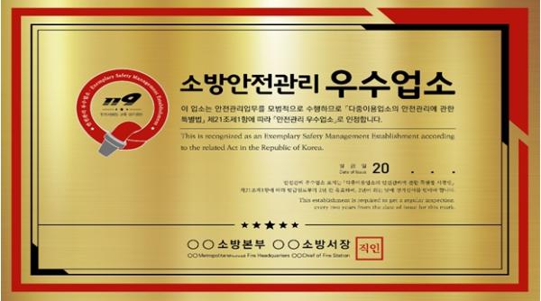 ‘다중이용업소 안전관리 우수업소 인증제’는 '다중이용업소의 안전관리에 관한 특별법'에 의거, 다중이용업소 안전관리의 자긍심 고취와 자율 소방 안전관리 정착·유도를 도모하기 위해 운영되는 제도다.