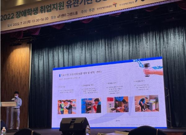 이번 워크숍에서는 장애인 일자리 중 디지털, 산업기술, 환경, 미래원천기술 등의 신기술 분야에서의 사례가 각각 발표됐으며, 특히 이중 환경분야에서 남양주시북부장애인복지관의 ‘다회용품 대여 및 세척관리’ 직무가 우수 사례로 선정돼 사업 내용을 발표하는 시간을 가졌다.