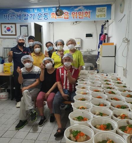 [한국뉴스타임=편집국] 바르게살기운동 남양주시협의회 화도읍위원회(위원장 조근상)는 초복을 맞이해 지난 14일 홀로 지내시는 어르신들의 건강을 챙길 음식을 준비해 동부희망케어센터를 통해 추천받은 화도읍, 수동면의 독거노인 26명에게 전달했다.