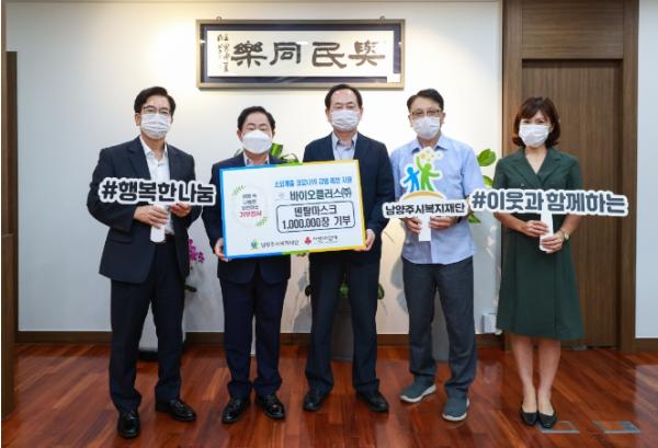 바이오플러스㈜(대표이사 정현규)는 4일 코로나19 확산 방지를 위해 덴탈 마스크 100만 장을 남양주시복지재단(대표이사 우상현)에 기탁했다.