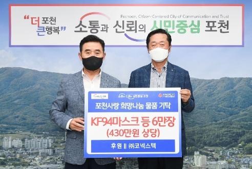 [한국뉴스타임=편집국] 포천시 관내 업체인 ㈜코넥스텍이 지난 4일 코로나19 감염취약시설인 노인복지시설, 장애인단체 등을 위해 마스크 6만 장(430만 원 상당)을 기부했다.
