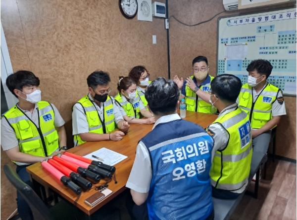 오 의원은 김달수 의정부자율방범연합대 대장과 대원들의 의견 청취와 더불어 이날 밤 9시부터는 자율방범활동, 10시부터는 의정부자율방범대가 실시하는 여성안심귀가서비스도 함께했다.