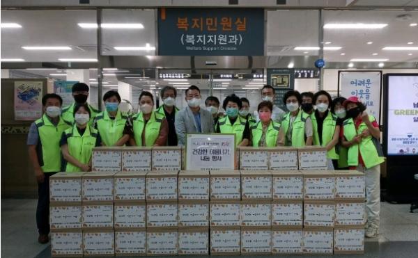 [한국뉴스타임=편집국] 남양주시 다산1동 지역사회보장협의체는 9일 혹서기 건강관리에 취약한 저소득층 50가구를 방문해 물품 전달 및 여름철 안부를 확인하는 ‘건강한 여름나기 꾸러미’나눔 행사를 전개했다.