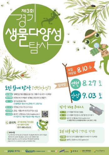 사전 참여신청한 도민들은 포유류, 조류, 양서파충류, 곤충, 식물 분야별 생태전문가들의 탐사교육을 받을 수 있고, 탐사 과정을 영상으로 기록하는 ‘탐사브이로그(v-log) 콘테스트’에 참여할 수 있다. 콘테스트와 탐사분야 우수자에게는 경기도지사상, 경기환경에너지진흥원장상이 수여된다.