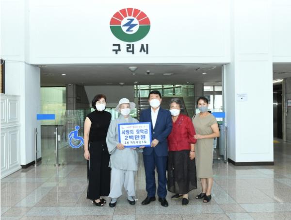 [한국뉴스타임=편집국] 구리시는 11일 구리시청 3층 민원상담실에서 대덕사 신도회(회장 김춘희)와 장학금 전달식을 가졌다.