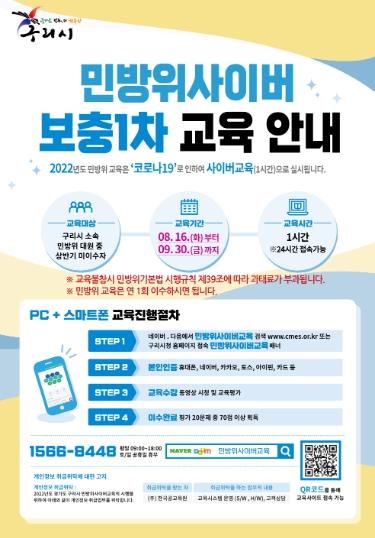 [한국뉴스타임=편집국] 구리시는 8월 16일부터 9월 30일까지 상반기 사이버교육을 이수하지 못한 구리시 소속 민방위 대원 약 2,000명을 대상으로 민방위 사이버 1차 보충교육을 실시한다.