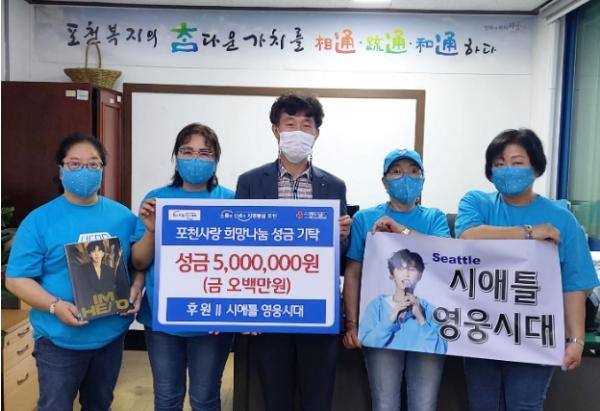 [한국뉴스타임=편집국] 가수 임영웅의 미국 내 팬클럽 ‘시애틀 영웅시대’는 지난 16일 성금 500만 원을 경기사회복지공동모금회를 통해 포천시에 기탁했다.
