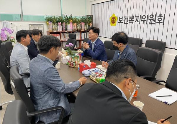 최종현 경기도의회 보건복지위원장(더불어민주당, 수원7)은 17일 경기도의회 보건복지위원장실에서 경기도장애인시설연합회(회장 송영진) 관계자와 경기도 장애인생산품판매시설 활성화를 위한 정담회를 가졌다.