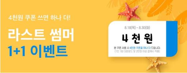 ‘라스트 썸머 1+1’ 이벤트는 배달특급으로 총 20,000원 이상 주문 시에 사용할 수 있는 4,000원 할인 쿠폰을 제공하는 것이 주요 내용이다.