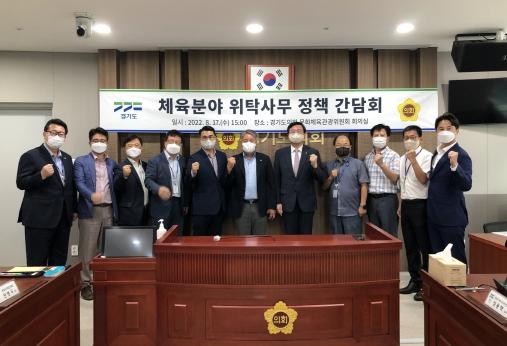 21년 3월부터 경기주택도시공사에서 위탁운영 중인 경기도체육회관, 사격테마파크, 유도회관, 검도회관과 경기도청 직장운동경기부(10개팀 79명으로 구성)위탁사업을 그 동안 경영혁신을 통해 준비한 경기도체육회로 환원하고자 이번 정책 간담회를 열었다.