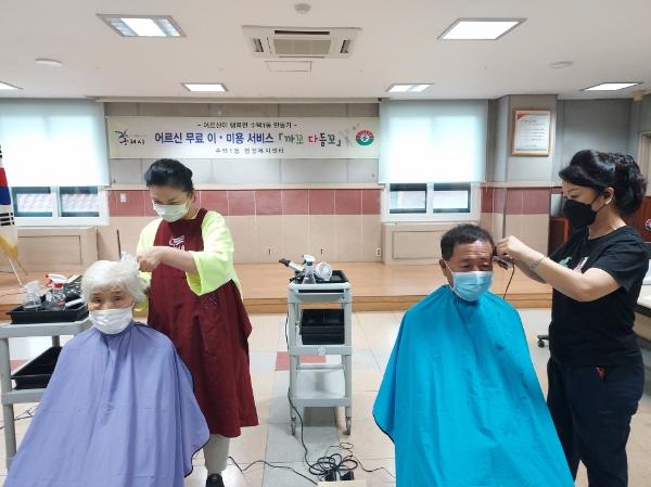 이·미용 봉사는 관내 취약계층 어르신의 두발관리를 위하여 보광미용봉사회(회장 송영삼) 자원봉사자의 재능 기부로 실시되고 있다.
