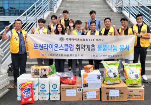 한편, 포천라이온스클럽 국제라이온스협회 제354-H(경기북부)지구에 속해 있으며 ‘우리는 봉사한다(We Serve)’라는 슬로건 아래 지역사회를 위한 나눔과 봉사를 꾸준히 실천하고 있다.