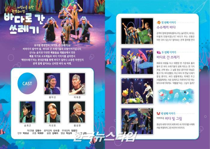 ‘바다로 간 쓰레기’는 환경문제를 소재로 한 작품으로, 버려지지 말아야 할 바다로 간 쓰레기들의 모험 이야기를 연극적 상상으로 풀어냈다. 이번 공연은 신나는 음악과 다양한 폐품들을 재활용하여 만든 악기 및 오브제들로 무대를 가득 채워 풍성한 볼거리와 함께 어린이들에게 환경문제를 쉽고 재미있는 방식으로 체감할 수 있는 기회를 제공할 것이다.