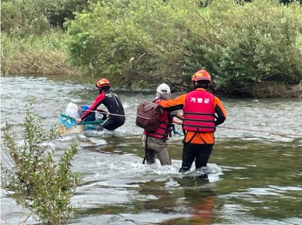 [한국뉴스타임=편집국] 가평소방서는 19일 오전 11시경 불어난 계곡물로 귀가에 어려움을 겪고 있는 70대 노인의 안전 귀가를 도왔다고 전했다.