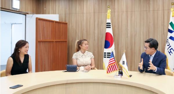 김동연 지사는 19일 오후 경기도청을 방문한 엘런 박 하원의원과 린다 리 시의원을 만난 자리에서 “(두 분이) 미국사회에서 정계에서 큰 활약을 하고 있어서 기쁘고 한미 간 협력에 있어서도 좋은 가교역할을 해주실 것이라 믿는다”면서 “앞으로 경기도가 뉴욕시 등과 협력 관계를 맺었으면 좋겠다”고 말했다.