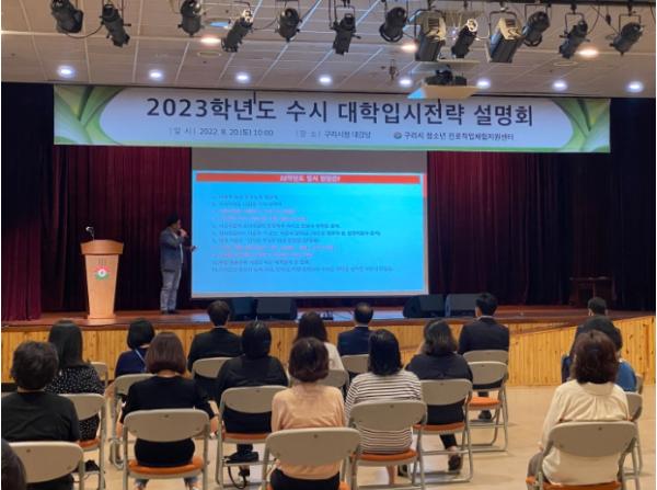 [한국뉴스타임=편집국] 구리시는 20일, 구리시청 대강당에서 ‘2023학년도 수시전형 대비 대학입시전략’ 설명회를 개최했다.