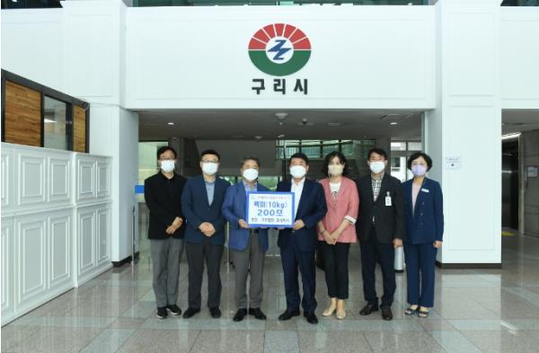 [한국뉴스타임=편집국] 구리시는 19일 구리청과주식회사(대표 이석우)와 저소득층 가구를 위한 사랑의 백미(10kg) 200포(약 590만 원 상당)를 전달받고 구리시청 3층 민원상담실에서 전달식을 가졌다.