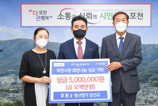 [한국뉴스타임=편집국] 포천시 청산명가는 지난 22일 이웃돕기 성금 500만 원을 경기사회복지공동모금회를 통해 포천시에 기탁했다.