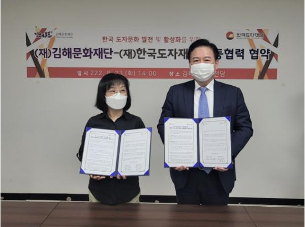 이번 협약은 경상도 도자문화산업 중심지인 김해 지역 문화 관련 기관과의 교류를 확대하고 이와 더불어 국내외 도자문화 교류 사업을 활성화하기 위해 마련됐다. 협약식에는 서흥식 한국도자재단 대표이사, 손경년 김해문화재단 대표이사 등이 참석했다.