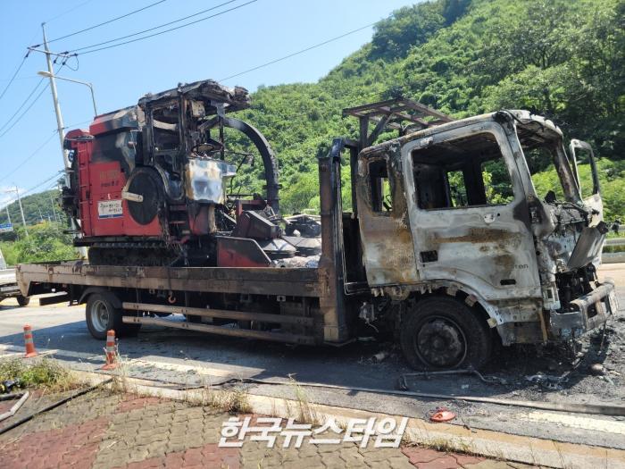 [한국뉴스타임=보도국] 가평군 한우연합회 축산용 베일러와 운반트럭이 화재로 전소되는 사고가 발생하였다.