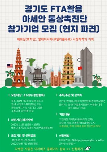 [한국뉴스타임=편집국] 경기도와 경기FTA활용지원센터가 아세안 시장을 공략할 도내 중소기업을 오는 30일까지 모집한다.