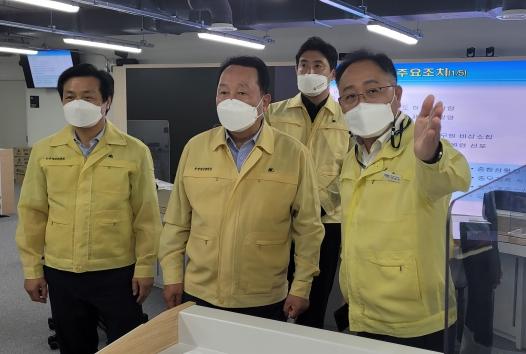 [한국뉴스타임=편집국] 경기도의회 안전행정위원회 안계일 위원장(국민의힘, 성남7)과 이상원 부위원장(국민의힘, 고양7), 문형근 부위원장(더불어민주당, 안양3)이 23일(화) 도청 충무시설에 마련된 ‘2022 을지연습’ 전시종합상황실을 방문하여 연습에 참석 중인 공무원 및 관계자들을 격려하였다.