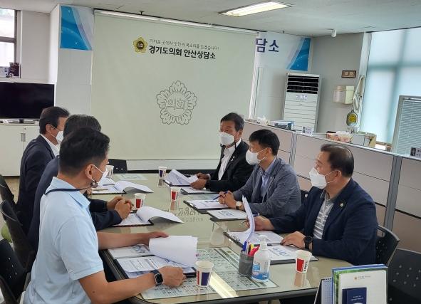 [한국뉴스타임=편집국] 김태희 도의원(안산시2, 경제노동위), 김철진 도의원(안산시7, 문화체육관광위),강태형 도의원(안산시5, 농정해양위)은 23일 경기도의회 안산상담소에서 경기신용보증재단 중부지역본부장, 안산지점장으로부터 경기신용보증재단 안산지점의 주요 업무에 대해 보고받는 자리를 가졌다.