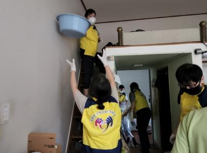 이번 주거환경개선 지원을 통해 150ℓ 쓰레기종량제봉투 4개분의 인분이 묻은 이불과 의복을 청소하였고, 구더기와 벌레들이 들끓고 있는 각종 집기를 정리하였다.