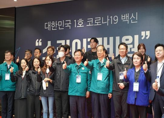 이날 15시부터 열린 백신 출하 기념식에는 한덕수 국무총리와 정춘숙 국회 보건복지위원장, 강기윤 보건복지위원회 여당 간사, 김형동 국회의원, 이기일 보건복지부 제2차관, 이철우 경북도지사, 권기창 안동시장, 최창원 SK디스커버리 부회장, 안재용 SK바이오사이언스 대표이사 사장 등이 참석했다.