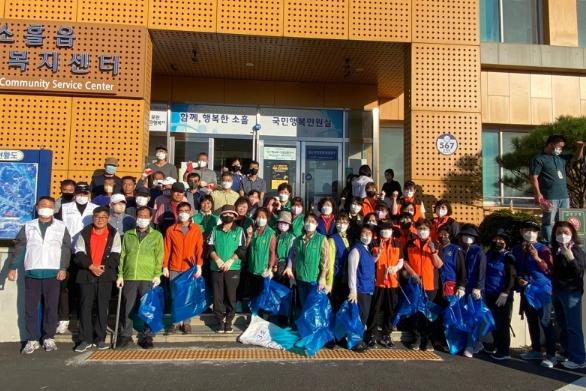 이번 대청소는 소흘읍 이장협의회, 바르게살기운동위원회, 새마을부녀회, 생활개선회, 여성의용소방대, 주민자치위원회 등 6개 단체와 공무원 120여 명이 참여한 가운데 송우리 시내 및 도로변, 관광지 등을 중심으로 일제히 실시했으며, 특히 지난 8월 집중호우로 산책로 및 하천변에 쌓인 쓰레기 수거 등 대대적인 환경 정비를 실시했다.