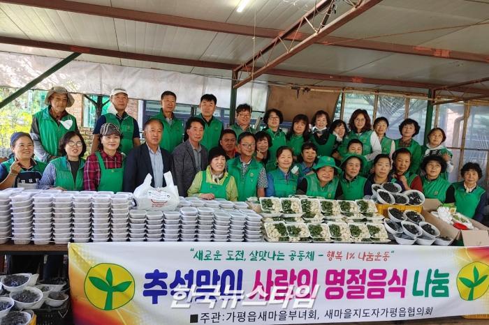 [한국뉴스타임=가평] 가평읍 새마을지도자(회장 조돈수)·부녀회(회장 고광희)에서는 다가오는 추석을 맞이해 직접 송편, 전 등 추석음식을 정성스레 만들어 가평읍 거주 독거노인 등 소외계층 전달하여 서로 함께하고 훈훈한 정이 넘치는 소식을 전했다.