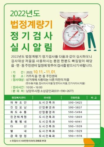 [한국뉴스타임=편집국] 남양주시는 지난 5일 시 홈페이지를 통해 ‘2022년도 계량기 정기 검사’를 공고하고, 한 달여간의 공고 기간을 거친 후 오는 10월 11일부터 11월 1일까지 읍·면·동별로 정기 검사를 실시한다고 6일 밝혔다.