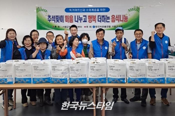 [한국뉴스타임=가평] 6일 한국자유총연맹 가평군지회 박경수 지회장과 15여명의 회원들은 밑반찬봉사를 후원하고 있는 임대원 가평군자원봉사센터장이 참여한 가운데 ‘지역사랑 한가위나눔’ 봉사를 실시 했다고 전했다.