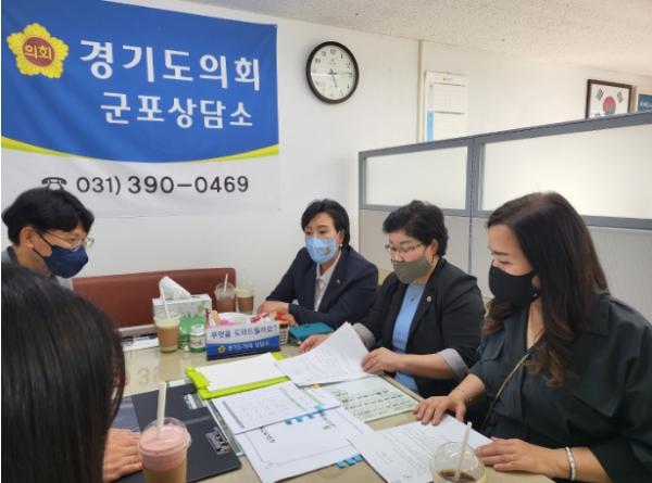 [한국뉴스타임=편집국] 경기도의회 정윤경 의원(더불어민주당, 군포1), 최효숙 의원(더불어민주당, 비례), 김옥순 의원(더불어민주당, 비례)은 6일 경기도의회 도의원들의 요청으로 군포의왕교육지원청 행정과장, 교육시설1팀 관계자들과 2022년 학교숲 조성사업 대상학교 2차 선정 결과 및 예산 지원 계획 관련 보고 받는 자리를 가졌다.