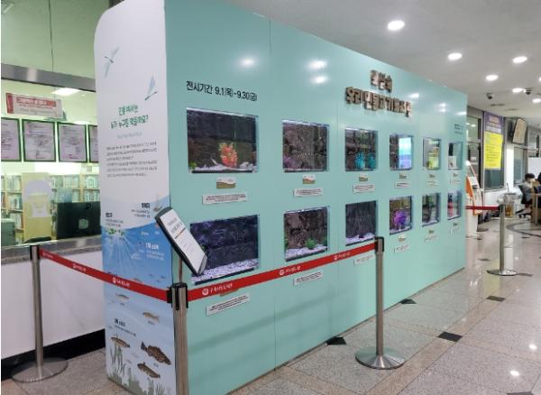 [한국뉴스타임=편집국] 구리시 인창도서관은 경기도해양수산자원연구소와 협력사업으로 ‘우리나라 강, 하천의 토종 민물고기 이동 전시관’을 도서관 1층에 설치하고 오는 30일까지 운영한다고 밝혔다.