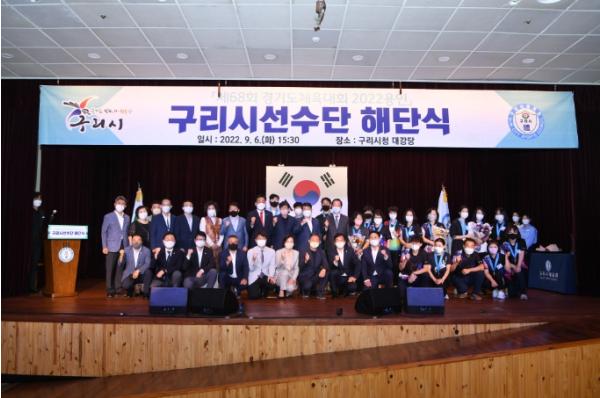 구리시체육회(회장 강예석)는 9월 6일 구리시청 대강당에서 '제68회 경기도체육대회 2022 용인'구리시선수단 해단식을 열고 선수단의 노고를 치하했다.