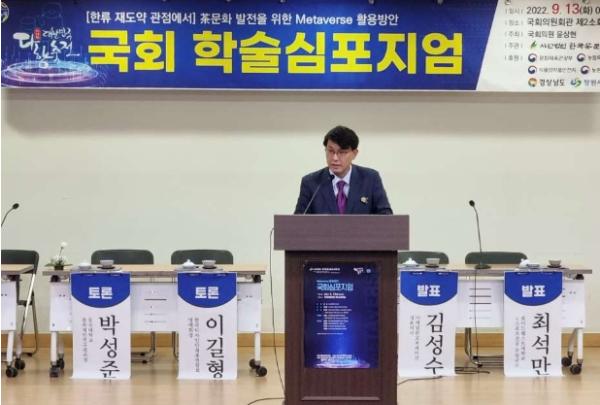 주제발표를 맡은 최석만 교수는 “차(茶)를 마시는 문화는 예전부터 우리 조상들의 일상생활 속에 존재했던 생활 자체의 문화”라며 “차(茶)와 관련된 영화, 드라마, 게임, 캐릭터 등 콘텐츠 중심의 메타버스를 제작하는 ‘체험형 차(茶) 문화’를 구축할 수 있다면 차(茶)의 전후방적 연계산업과 수익구조를 다양화 할 수 있다”고 말했다.