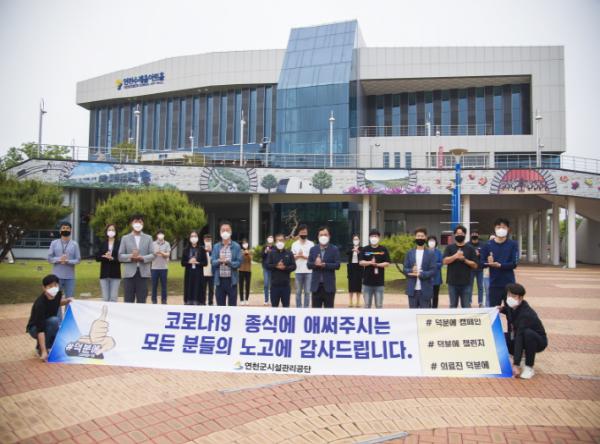 연천군시설관리공단(이사장 김응연)은 29일 연천수레울아트홀 광장에서 김응연 이사장을 비롯한 시설관리공단 직원들이 덕분에 챌린지 캠페인에 동참했다.