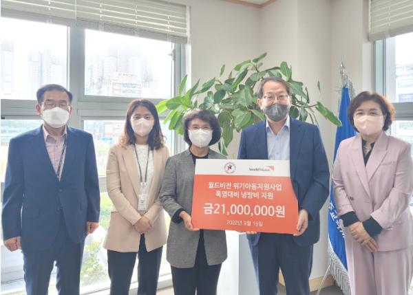 [한국뉴스타임=편집국] 구리남양주교육지원청은 9월 15일 지난 폭염으로 힘들었을 취약계층 학생과 가정을 지원하기 위해 월드비전(경기북부사업본부) 냉방비 지원금 전달식을 가졌다.