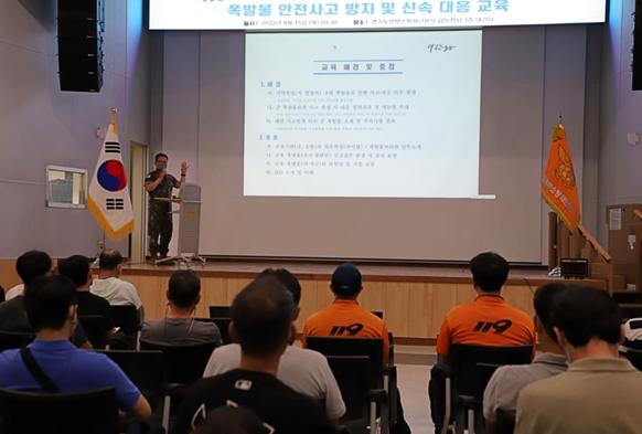 이날 교육은 접경지를 보유한 경기북부 지역에서 폭발물 안전사고가 꾸준히 발생하고 있는 만큼, 폭발물 사고 시 현장 대원 사고 방지 및 신속한 현장 대응을 통한 대국민 안전사고 사전 방지를 위해 마련됐다.