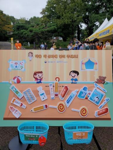 의약품 안전 사용 교육 체험관에서 ‘약’과 ‘약이 아닌 것’을 구분하고, ‘먹는 약’과 ‘바르는 약’을 구분하는 등 놀이형 체험 교구를 활용해 의약품의 올바른 사용 방법을 배우는 시간을 가졌다.