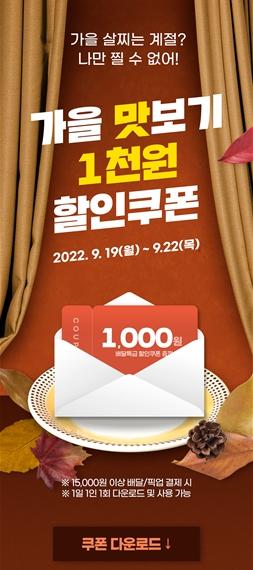 경기도주식회사는 19일 월요일부터 오는 22일 목요일까지 나흘간 배달특급 전체 회원을 대상으로 ‘가을 맛보기 할인’ 이벤트를 진행한다고 밝혔다.
