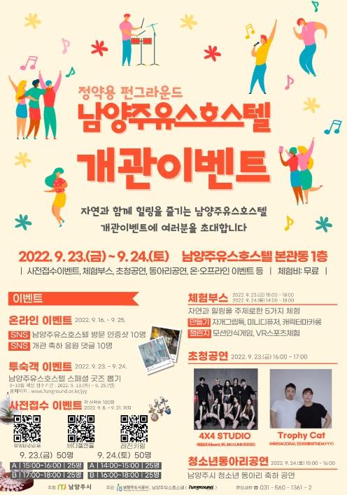 한편, 남양주유스호스텔은 청소년들의 체력향상과 정서 함양을 위해 주변 자연환경을 활용한 청소년 수련 프로그램과 댄스·문화·예술을 경험할 수 있는 다양한 특화프로그램을 운영할 계획이며, 청소년들을 위한 공간을 넘어 시민들의 힐링공간으로 자리매김하도록 힘쓸 예정이다.