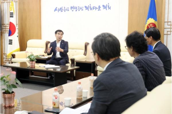 [한국뉴스타임=편집국] 염종현 경기도의회 의장(더민주, 부천1)은 19일 한국예술문화단체총연합회 경기도연합회 김용수 회장을 만나 경기도 문화예술계 지원방안을 논의했다.