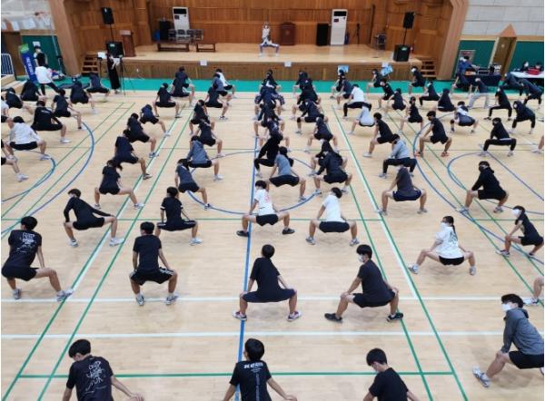 행사에서는 100만 운동 유튜버로 활동 중인 심으뜸 강사의 체육 진로 특강과 준비운동을 시작으로 ▲10m 왕복달리기 ▲제자리 점프 ▲제자리멀리뛰기 ▲윗몸일으키기 ▲좌전굴 ▲배근력 등 체육대학들의 주요 실기 6종목에 대한 모의 테스트를 실시했다.